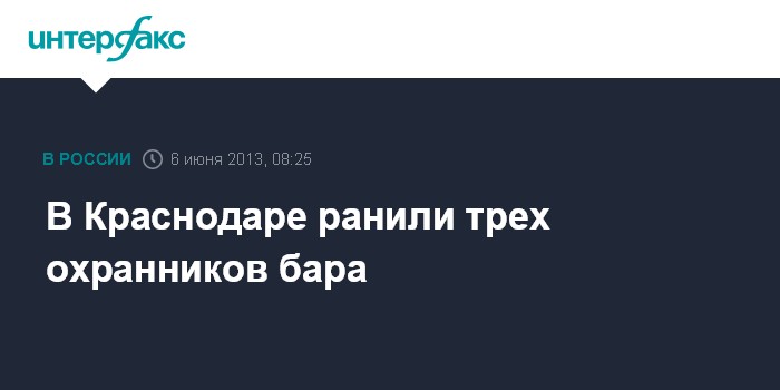 Москва. 6 июня. INTERFAX.RU - Трое охранников одного из баров Краснодара в ночь на четверг получили ножевые ранения, когда попытались не пропустить в заведение трех выходцев с Северного Кавказа, сообщил "Интерфаксу" источник в правоохранительных органах.