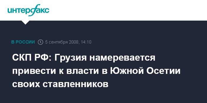Москва. 5 сентября. INTERFAX.RU - Следственный комитет при прокуратуре (СКП) РФ располагает данными о намерении грузинских властей создать марионеточное правительство в Южной Осетии.