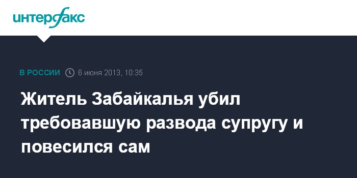 Житель Забайкалья убил требовавшую развода супругу и повесился сам