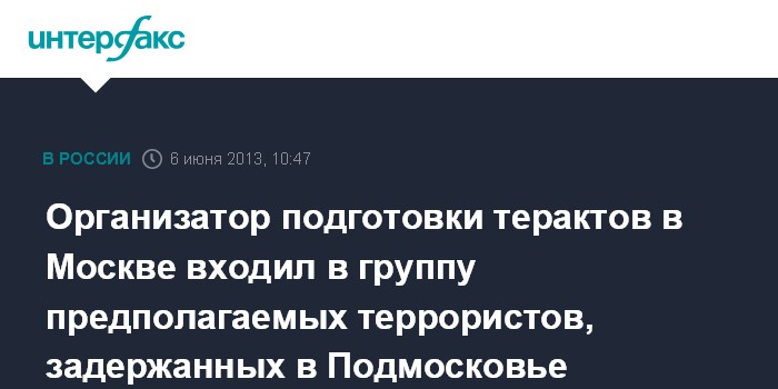 "В группу, готовившую теракт в Москве, входили три человека. Ранее в подмосковном Орехово-Зуево были задержаны два человека, Давлетбаев был предполагаемым организатором подготовки террористических актов в российской столице", - сообщил "Интерфаксу" источник в правоохранительных органах.