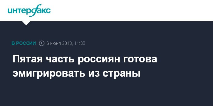 Москва. 6 июня. INTERFAX.RU - Доля россиян, желающих уехать из страны на постоянное место жительства (ПМЖ) за рубеж, выросла до 22% с 13% в 2009 году, показывают исследования социологов.