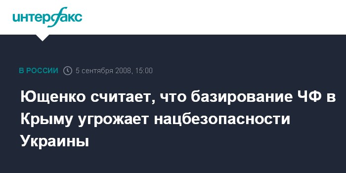 Киев. 5 сентября. INTERFAX.RU - Базирование военных формирований Черноморского флота Российской Федерации на территории Украины может представлять угрозу национальной безопасности страны, заявил украинский президент Виктор Ющенко.