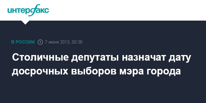 Москва. 7 июня. INTERFAX.RU - Депутаты Мосгордумы в пятницу утром соберутся на внеочередное заседание, чтобы принять постановление о назначении даты досрочных выборов мэра Москвы на единый день голосования, 8 сентября.