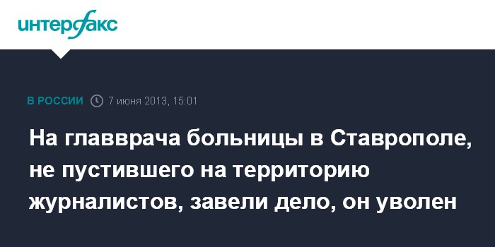 На главврача больницы в Ставрополе, не пустившего на территорию журналистов, завели дело, он уволен