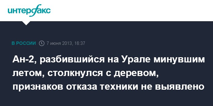 Ан-2, разбившийся на Урале минувшим летом, столкнулся с деревом, признаков отказа техники не выявлено