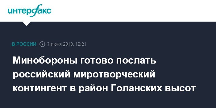 Москва. 7 июня. INTERFAX.RU - Министерство обороны РФ готово в случае получения задачи от Верховного главнокомандующего выделить воинские подразделения для выполнения миротворческой миссии на Голанских высотах, заявил "Интерфаксу" в пятницу официальный представитель военного ведомства.