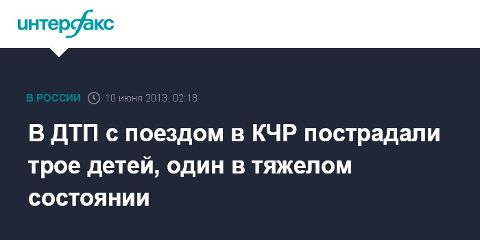 Черкесск. 10 июня. ИНТЕРФАКС-ЮГ - В результате ДТП на железнодорожном переезде в Карачаево-Черкесии двое из восьми пострадавших, в том числе один ребенок, находятся в тяжелом состоянии.