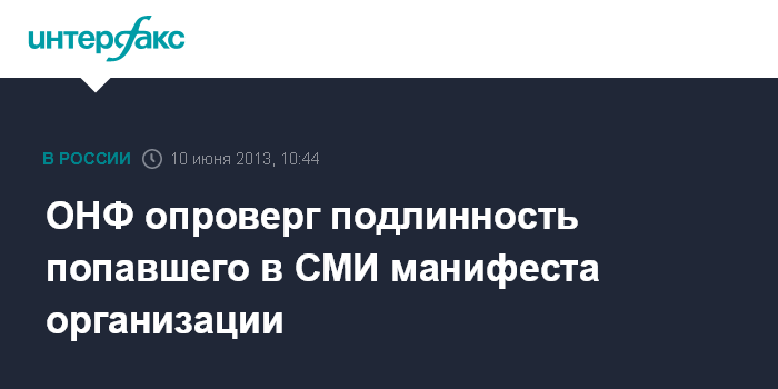 Москва. 10 июня. INTERFAX.RU - В Общероссийском народном фронте (ОНФ) заявляют, что появившиеся в СМИ якобы фрагменты манифеста ОНФ, который планируется принять на съезде, который пройдет 11-12 июня, не соответствуют проекту, который выносится на съезд.