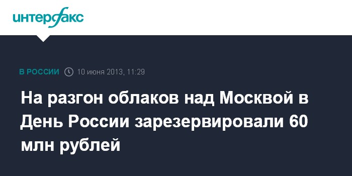 На разгон облаков над Москвой в День России зарезервировали 60 млн рублей