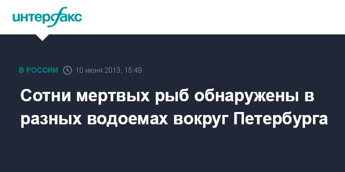 Санкт-Петербург. 10 июня. INTERFAX.RU - Прокуратура Санкт-Петербурга проводит проверку по факту массовой гибели рыбы в водных объектах города, сообщает пресс-служба ведомства в понедельник.