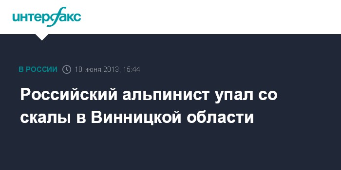 Киев. 10 июня. INTERFAX.RU - Вблизи с.Клещей (Винницкая обл.) 22-летний гражданин России сорвался со скалы по неосторожности во время спортивных занятий после чего был госпитализирован в районную больницу.