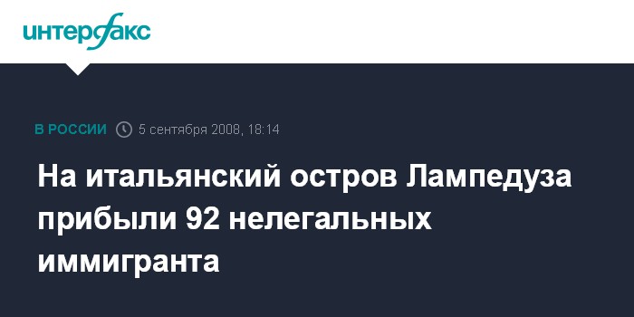 Москва. 5 сентября. INTERFAX.RU - Судно с 92 иммигрантами на борту задержано в пятницу к югу от острова Лампедуза, сообщила береговая гвардия Италии. Иммигранты, среди которых находятся три женщины, были остановлены кораблями военных морских сил Италии в нескольких милях от побережья. Затем они были пересажены в катера береговой охраны и направлены в порт Лампедузы.