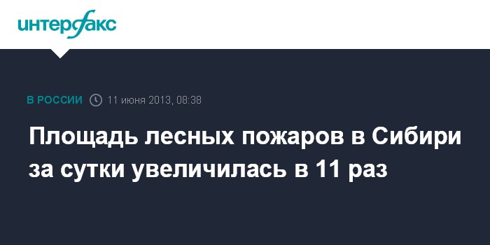 Площадь лесных пожаров в Сибири за сутки увеличилась в 11 раз