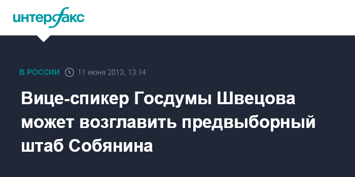 "Предвыборный штаб Собянина на период кампании по выборам мэра, намеченным на 8 сентября 2013 г., возглавит Швецова. Такое предложение ей сделано", - отметил собеседник агентства.