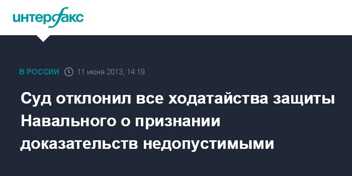 Киров. 11 июня. INTERFAX.RU - Ленинский райсуд Кирова во вторник исследовал все документы обвинения и отклонил все заявленные защитой Алексея Навального и Петра Офицерова ходатайства о признании недопустимыми некоторых из озвученных документов.