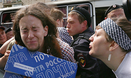 Между тем к стенам Думы, где в настоящее время проходит голосование за закон о запрете гей-пропаганды среди детей, а также против закона о защите религиозных чувств верующих, во вторник стягиваются пикетчики. Кроме того, по данным радиостанции "Эхо Москвы", к Думе пришли и ЛГБТ-активисты, которые попытались провести свою акцию "День поцелуев", направленную против гомофобии.