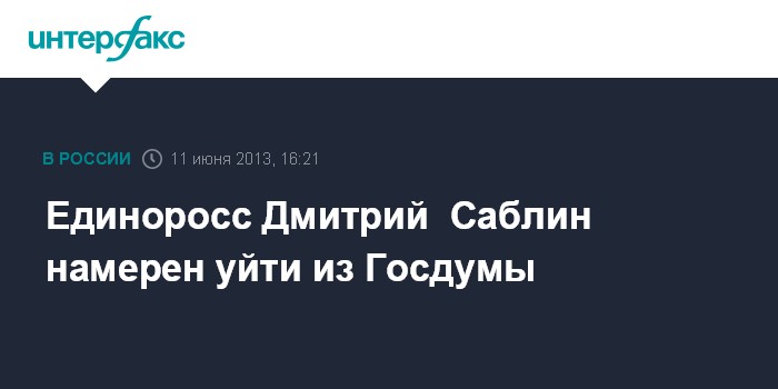 В ответ на просьбу "Интерфакса" уточнить причины досрочной сдачи мандата Саблин сказал: "По собственному желанию".
