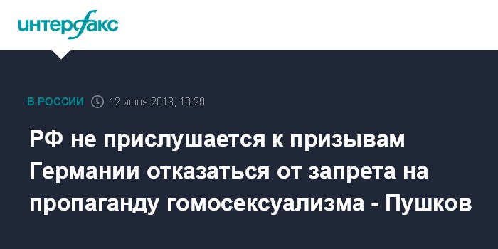 РФ не прислушается к призывам Германии отказаться от запрета на пропаганду гомосексуализма - Пушков