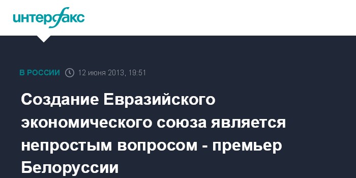 Минск. 12 июня. INTERFAX.RU - Премьер-министр Белоруссии Михаил Мясникович назвал сложной задачей создание Евразийского экономического союза.