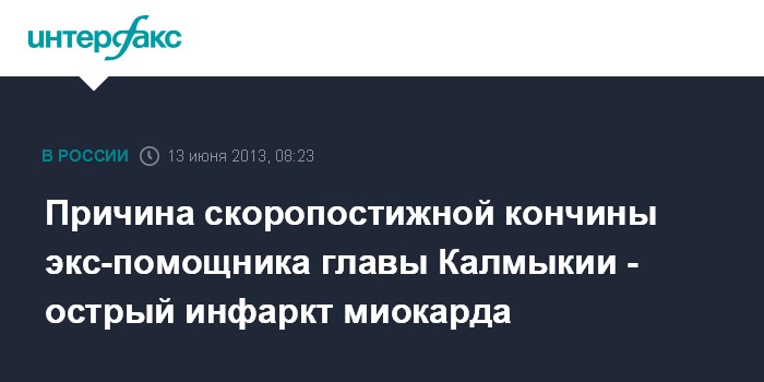 Причина скоропостижной кончины экс-помощника главы Калмыкии - острый инфаркт миокарда