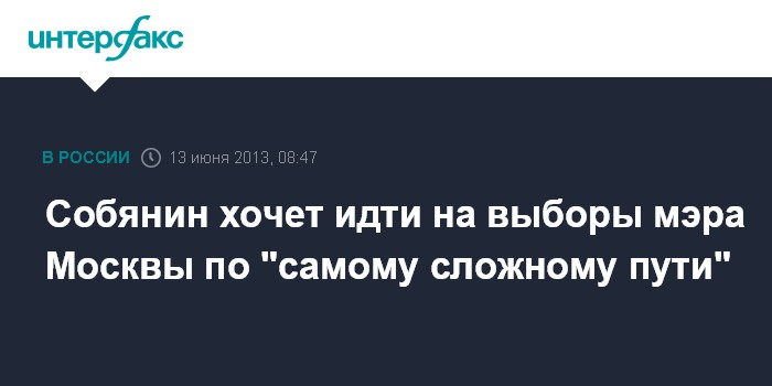 Собянин хочет идти на выборы мэра Москвы по "самому сложному пути"