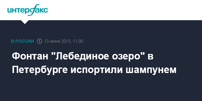 Санкт-Петербург. 13 июня. INTERFAX.RU - Хулиганы в Петербурге вывели из строя фонтан "Лебединое озеро" на Петроградской стороне, вылив в воду шампунь.