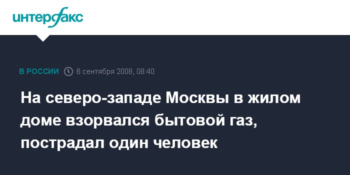 На северо-западе Москвы в жилом доме взорвался бытовой газ, пострадал один человек