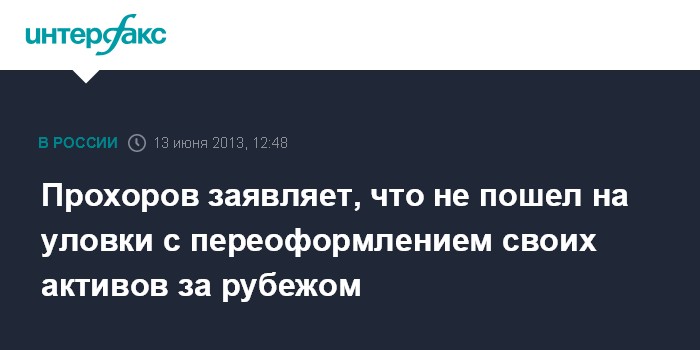 Прохоров заявляет, что не пошел на уловки с переоформлением своих активов за рубежом