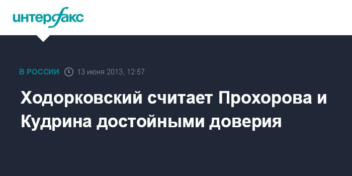 Москва. 13 июня. INTERFAX.RU - Экс-глава "ЮКОСа" Михаил Ходорковский считает, что бизнесмену Михаилу Прохорову и экс-главе Минфина Алексею Кудрину можно доверять, но в рамках их реальных возможностей.