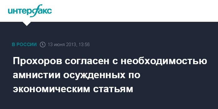 "Я за амнистию, которая позволяла бы дать амнистированным людям пересмотреть те дела, по которым они были осуждены",- сказал Прохоров на пресс-конференции в центральном офисе "Интерфакса" в четверг.