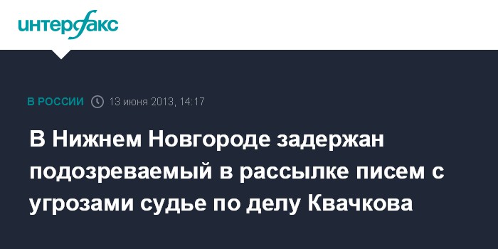 В Нижнем Новгороде задержан подозреваемый в рассылке писем с угрозами судье по делу Квачкова