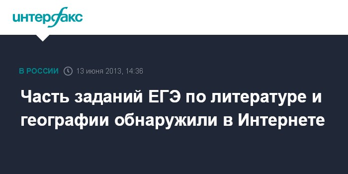 Москва. 13 июня. INTERFAX.RU - Специалисты Рособрнадзора в очередной раз нашли в Интернете фрагменты заданий ЕГЭ по прошедшим в четверг экзаменам - литературе и географии.