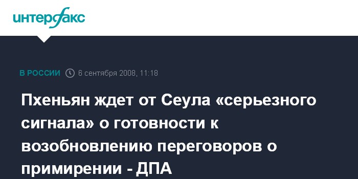 Пхеньян ждет от Сеула «серьезного сигнала» о готовности к возобновлению переговоров о примирении - ДПА