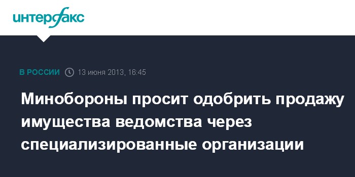 Москва. 13 июня. INTERFAX.RU - Министерство обороны России обратилось к правительству с просьбой одобрить подход, в соответствии с которым имущество ведомства продавали бы спецорганизации.