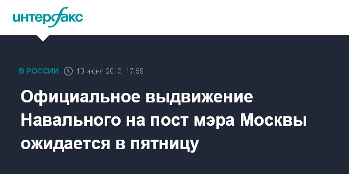 Официальное выдвижение Навального на пост мэра Москвы ожидается в пятницу