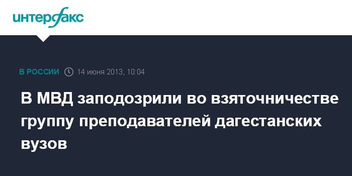 Москва. 14 июня. INTERFAX.RU - Группа преподавателей из числа профессорско-преподавательского состава республиканских вузов Дагестана подозревается в регулярном получении взяток от студентов и абитуриентов, сообщили в пресс-центре МВД РФ.