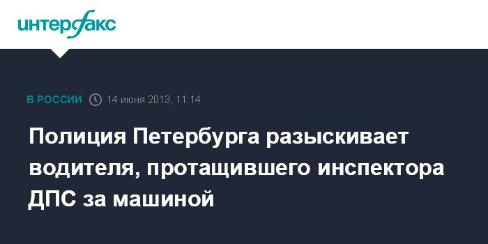 Санкт-Петербург. 14 июня. INTERFAX.RU- В Санкт-Петербурге полиция разыскивает водителя, который протащил за машиной остановившего его инспектора ДПС.