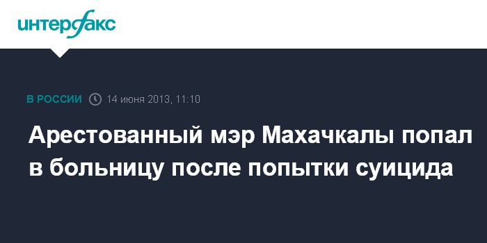 Москва. 14 июня. INTERFAX.RU - Мэр Махачкалы Саид Амиров после попытки суицида находится в больнице, его состояние удовлетворительное, сообщила официальный представитель ФСИН России Кристина Белоусова.