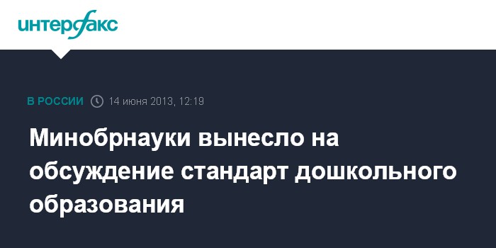 Москва. 14 июня. INTERFAX.RU - Общественное обсуждение нового федерального стандарта дошкольного образования стартовало в пятницу - программный для системы российских детских садов документ опубликован на сайте министерства образования и науки.