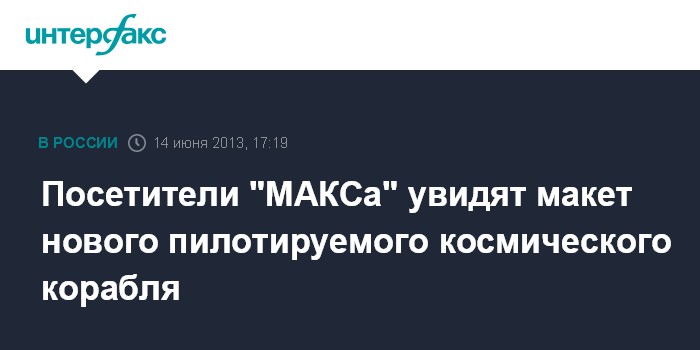 Ново-Огарево. 14 июня. INTERFAX.RU - Макет нового пилотируемого космического корабля будет представлен на международном авиакосмическом салоне "МАКС 2013", сообщил руководитель Федерального космического агентства Владимир Поповкин.