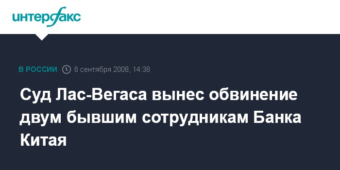 Пекин. 6 сентября. INTERFAX.RU - Суд города Лас-Вегас признал бывших сотрудников Банка Китая Сюй Чаофаня и Сюй Гоцзюня виновными в преступлениях, совершенных на территории США, сообщили китайские СМИ.