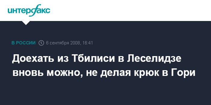Тбилиси. 6 сентября. INTERFAX.RU - В Грузии в субботу возобновилось прямое движение транспорта по центральной автомагистрали Тбилиси-Сенаки-Леселидзе, связывающей восток и запад страны, которое в течение трех с половиной месяцев осуществлялось по объездной дороге через город Гори.