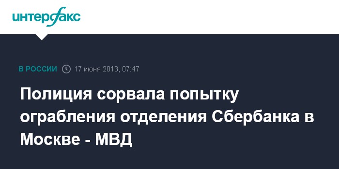 Полиция сорвала попытку ограбления отделения Сбербанка в Москве - МВД