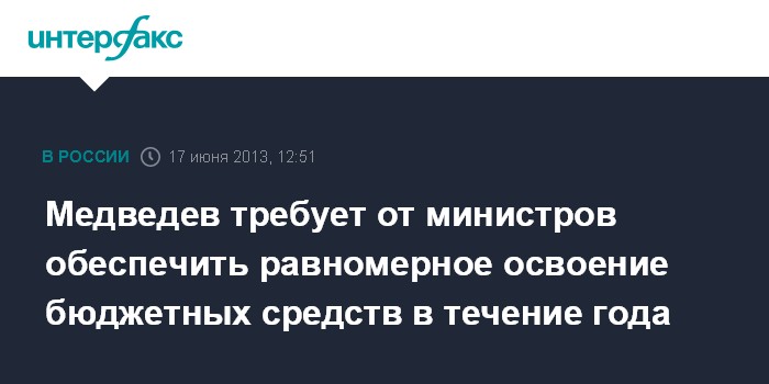 Москва. 17 июня. INTERFAX.RU - Премьер РФ Дмитрий Медведев сообщил, что в ближайшее время проведет совещание по вопросу о равномерном освоении бюджетных средств министерствами и ведомствами, и пообещал сделать на нем определенные выводы.