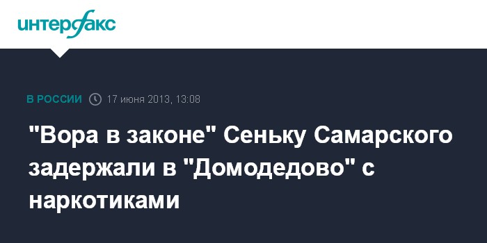 Москва. 17 июня. INTERFAX.RU - Неоднократно судимый "вор в законе" Анатолий Якунин ("Сенька Самарский") задержан по прилету из Симферополя в столичном аэропорту "Домодедово" с дозой наркотика.