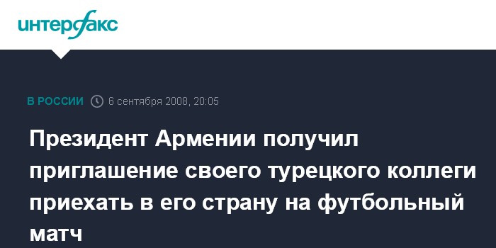 Президент Армении получил приглашение своего турецкого коллеги приехать в его страну на футбольный матч