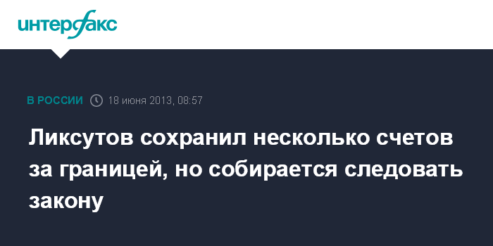 Ликсутов сохранил несколько счетов за границей, но собирается следовать закону