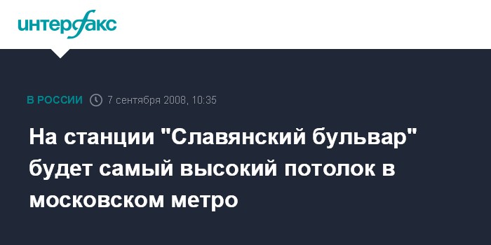 Москва. 7 сентября. INTERFAX.RU - На станции Московского метрополитена "Славянский бульвар", которая будет открыта в воскресенье на действующем участке между станциями "Парк Победы" - "Кунцевская" Абратско-Покровской линии, будет самый высокий потолок из всех станций столичного метро, сообщили "Интерфаксу" в пресс-службе метрополитена.