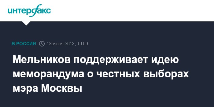 Он отметил, что КПРФ поддерживает проведение честных выборов мэра Москвы, поэтому подпишет меморандум, если он послужит этой цели. Однако обсуждать составление и подписание меморандума, по словам Мельникова, стоит после того, как определятся все кандидаты.