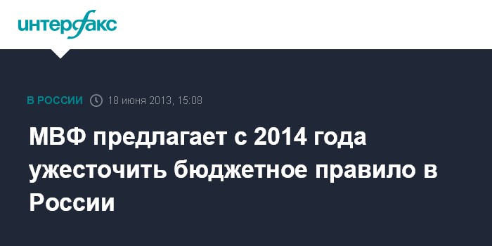 Москва. 18 июня. INTERFAX.RU - Бюджетное правило для ограничения расходов федерального бюджета, введенное в России, следует ужесточить с 2014 года, привязав его к более низкой цене на нефть, считает Международный валютный фонд (МВФ).